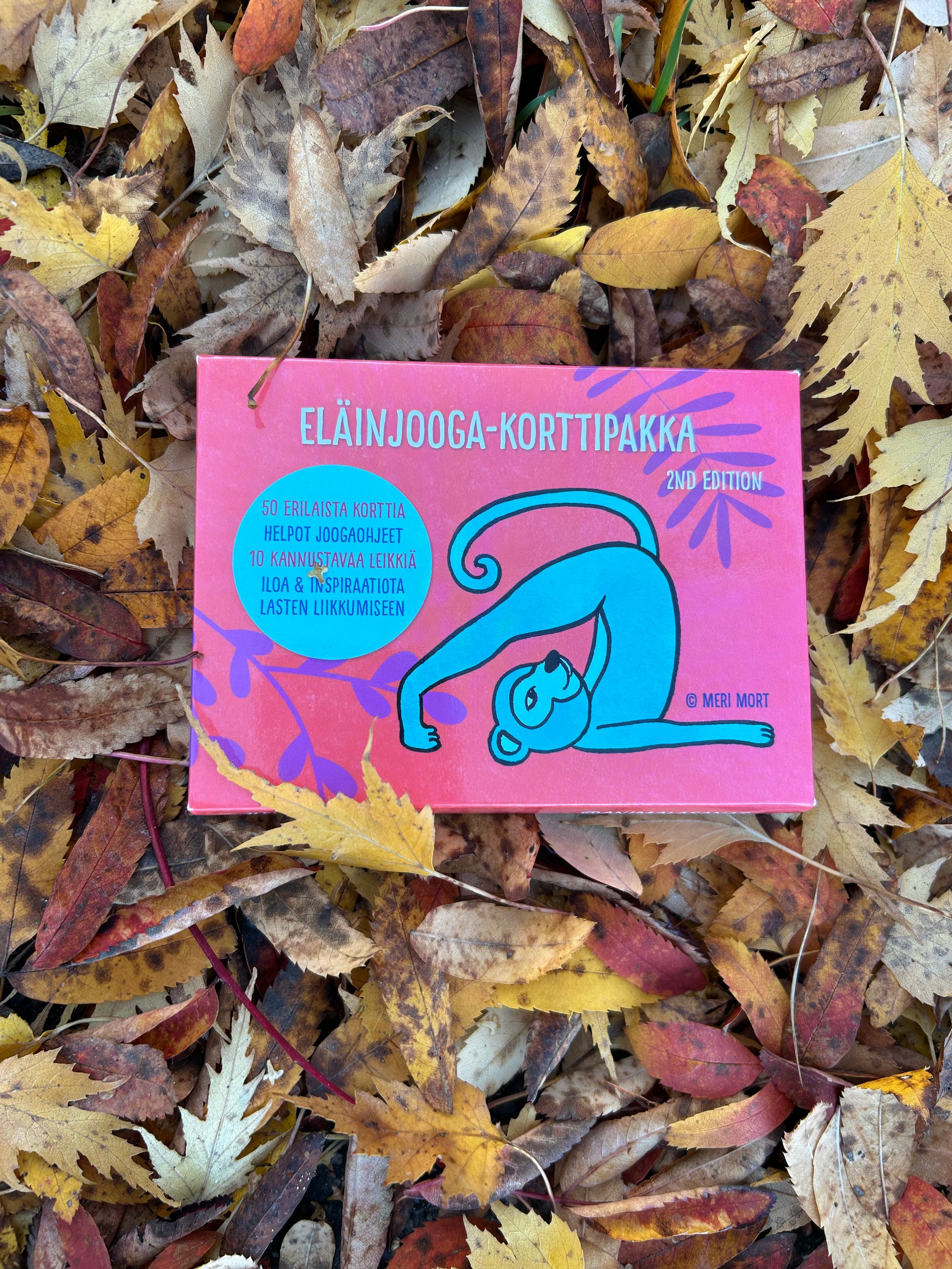 Eläinjoogakorttipakka sisältää yhteensä 50 värikästä korttia helposti ymmärrettävin, selkokielisin joogaohjein.