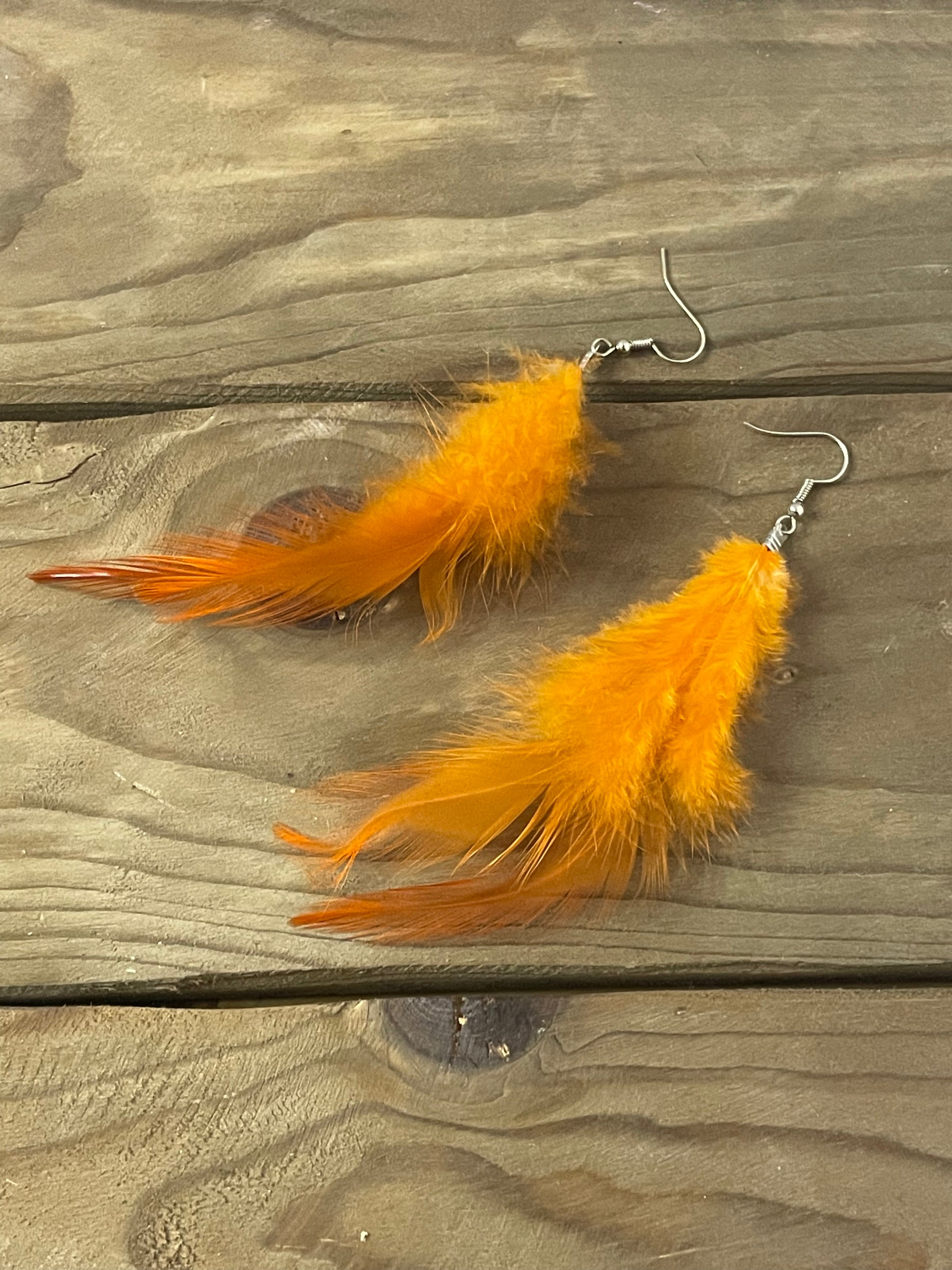 Suomalaisten kanojen ja kukkojen höyhenistä valmistettuja korvakoru. Höyhenet on kerätty omistajiaan kunnioittaen ja suurimmiksi osaksi jopa niin, että kyseisen kanan/kukon nimi ja asuinpaikkakin on tiedossa. Sulat on värjätty